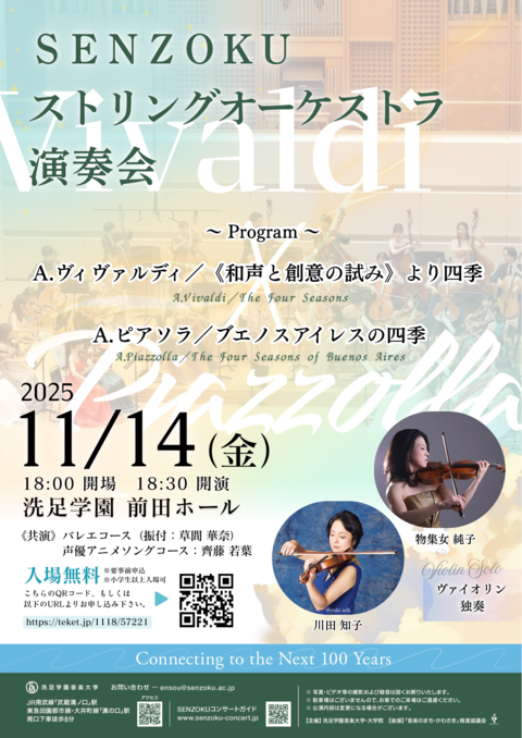 11/13 名手と共に、11/27 管弦楽団定期演奏会、11/29・30 Scholarship Student Showcase、12/9 ブルー・タイ ウインド後期演奏会、12/27・28 2025年度バレエコース本公演 公演情報を掲載しました