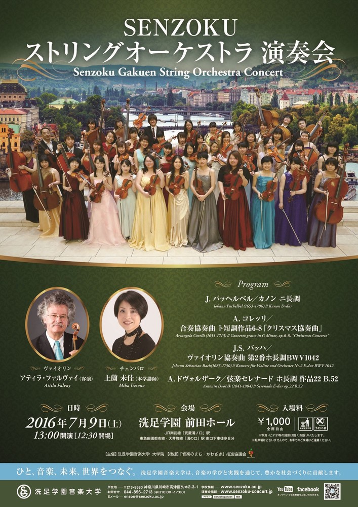 ハンガリー・リスト音楽院のヴァイオリンと室内楽の教授、コダーイ弦楽四重奏団のファーストヴァイオリン奏者であるアティラ・ファルヴァイ氏を招き、お膝元のチェコの作曲家ドヴォルザークの弦楽セレナードと、パッフェルベルのカノンを中心としたバロック音楽をお贈り致します。