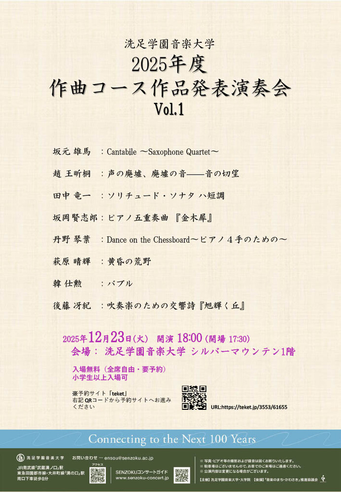 12/23 2025年度 作曲コース作品発表演奏会 Vol.1