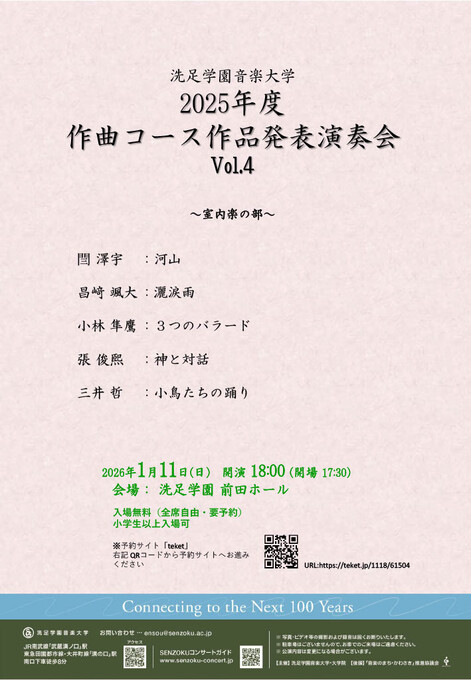 1/11 2025年度作曲コース作品発表演奏会 Vol.4〈室内楽の部〉